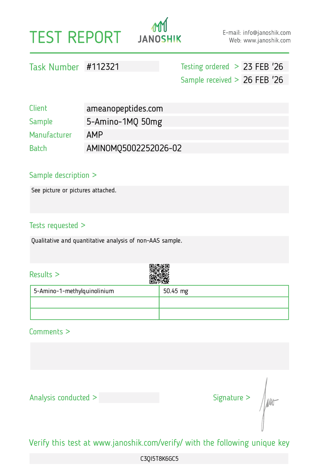 - Contents: 50mg of 5-Amino 1mq lyophilized powder