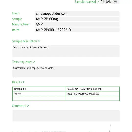 AMP-2P 60mg is a synthetic peptide under investigation for concurrent