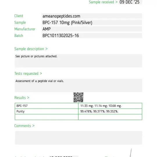 BPC-157 is a synthetic peptide provided for laboratory research purposes. This compound is supplied in lyophilized powder form and is intended strictly for in vitro use by qualified professionals in non-clinical environments.