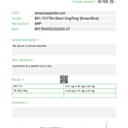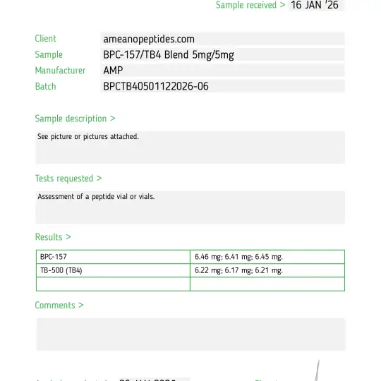 - Contents: BPC-157 5mg + Thymosin Beta-4 5mg