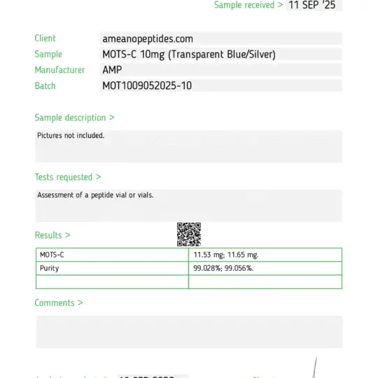 MOTS-c is a synthetic peptide composed of 16 amino acids. It is supplied as a lyophilized powder and intended solely for laboratory-based in vitro research by qualified professionals.