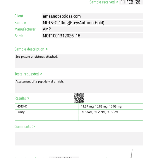 MOTS-c is a synthetic peptide composed of 16 amino acids. It is supplied as a lyophilized powder and intended solely for laboratory-based in vitro research by qualified professionals.