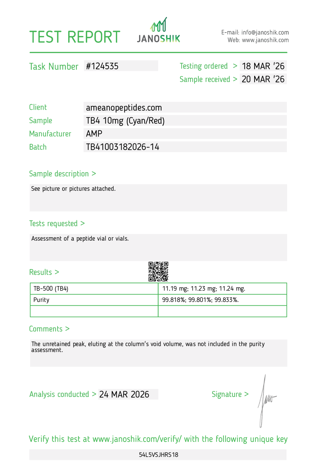 - Peptide Name: Thymosin Beta-4 (TB-4)
