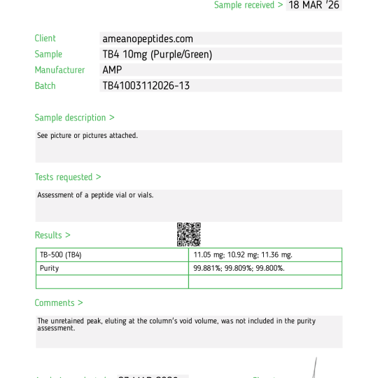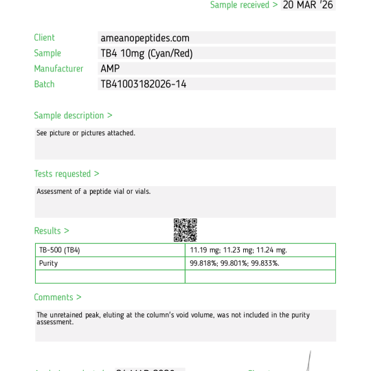 • Peptide Name: Thymosin Beta-4 (TB-4)